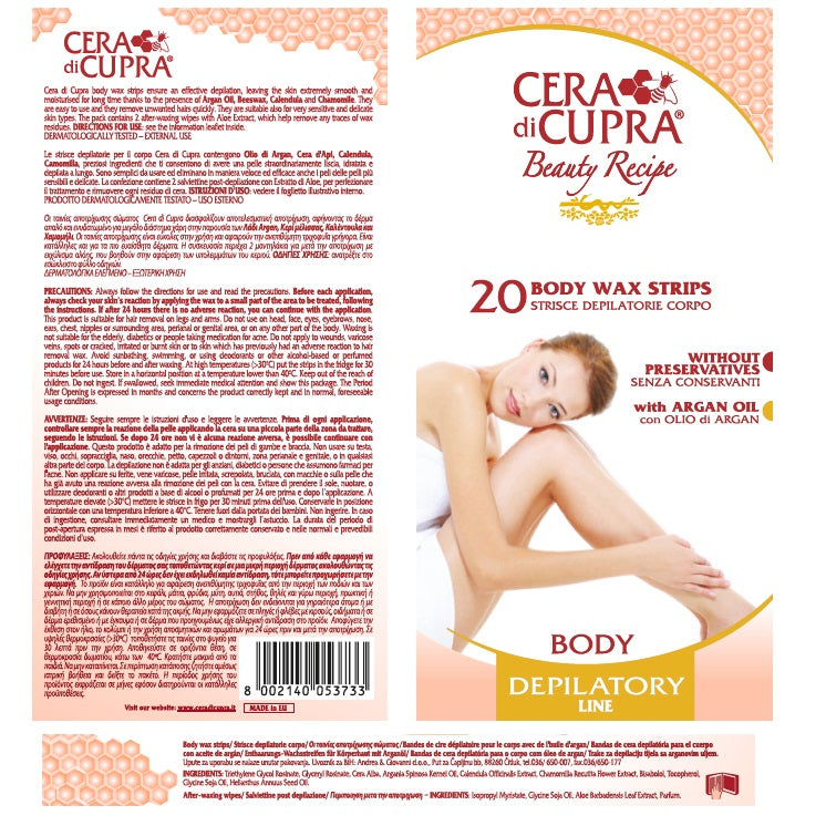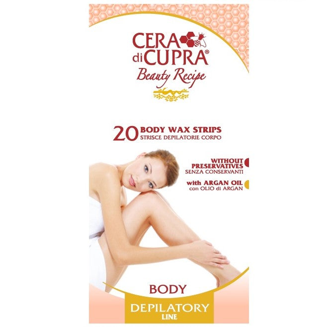 Cera di Cupra Body Wax Strips with Argan Oil. Dermatologically Tested. Preservatives Free - 20 Strips