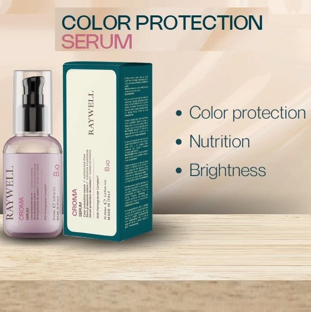 Raywell B.io Croma Serum (100ml) is a color protection serum, ideal for color-treated and sensitized hair. Nourishes and protects hair thanks to its active ingredients and ensures shine, softness, and silkiness with a lightweight feel. Instantly absorbed formula.