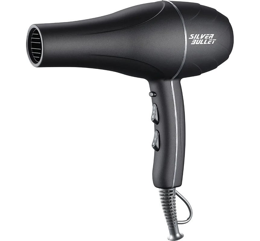 THE SILVER BULLET STYLE PRO HAIRDRYER 2200 Watts with Ionic Technology and Lightweight at only 541 grams. Includes 2 nozzles and a 2.8m length cord. Other features include 2 Speed & 3 Heat Settings as well as a Cold Shot Button and Auto Over-Heat Protection.
